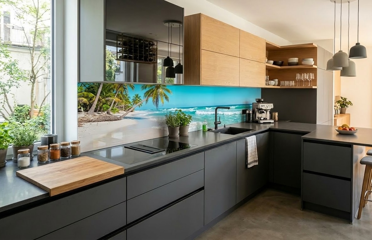 Het leukste blijft echter de mogelijkheid om de stijl van je keuken te perfectioneren met een eigen twist: een al dan niet zelf geschoten foto of tekening van iets dat je na aan het hart ligt en dat je wilt vereeuwigen op de achterwand van je keuken. Kies anders een specifiek decoratief patroon in de stijl van je interieur. Leuk bij een open keuken. Wel een idee maar niets concreet? Wij kunnen je desgewenst op weg helpen met een schitterend creatief ontwerp.